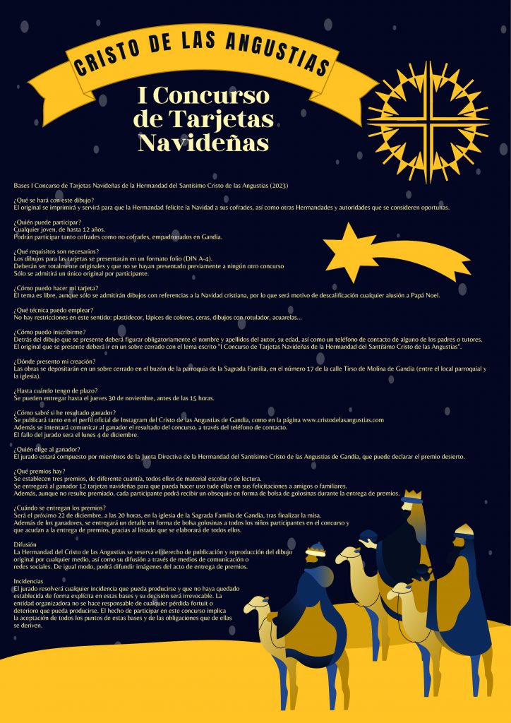 Publicada diciembre 2, 2022 El Cristo de las Angustias participa en la Campaña Solidaria de Navidad La hermandad del Cristo de la Angustias de Gandia participará este sábado, 3 de diciembre, en la Campaña Solidaria de Navidad, en […]