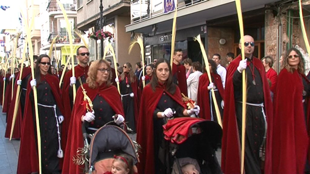 El Santísimo Cristo de las Angustias es una de las 18 Hermandades de Gandia que marchan en comitiva con la llegada del Domingo de Ramos. Vestidos con capa, pero sin capuchón ni báculo, acompañamos portando palmas a Jesús. Se trata del simbólico recorrido que recuerda al que hace más de 2.000 años realizara el Maestro a su entrada en Jerusalén, el que supone el punto de salida para la Semana de Pasión. Un día de fiesta, marcado por la alegría del momento, en que nuestra Hermandad rinde cada año tributo a la memoria de un acto de indudable carga emocional. Y lo hacemos de la mano del resto de Hermandades, y cerrando el acto las autoridades y la imagen de la Entrada de Jesús en Jerusalén, con el Maestro a lomos de un pollino.